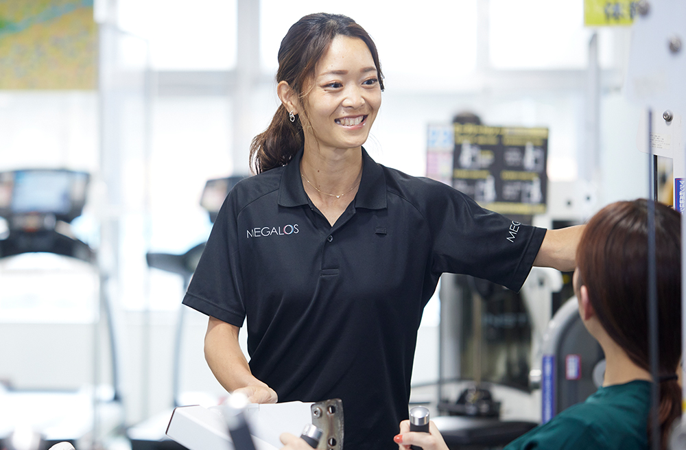 中学・高校と続けていた陸上部から心機一転、東女体大ではダンス部に所属。ダンスは未経験だったので、最初は足が上がらなかったり、ターンが上手くできなかったり大変でしたが、自分なりに練習を重ねたことで舞台に上がれるまでに成長。練習量が結果につながった経験は、今の仕事にも活きていると思います。入社後、初めてスタジオレッスンを持ったときも、何度も練習をくり返したことで自信を持ってお客さまに提供できました。そして運動する楽しさを知って、メガロスに来ることが生活の一部になっているお客さまを見ると、とてもやりがいを感じますね。