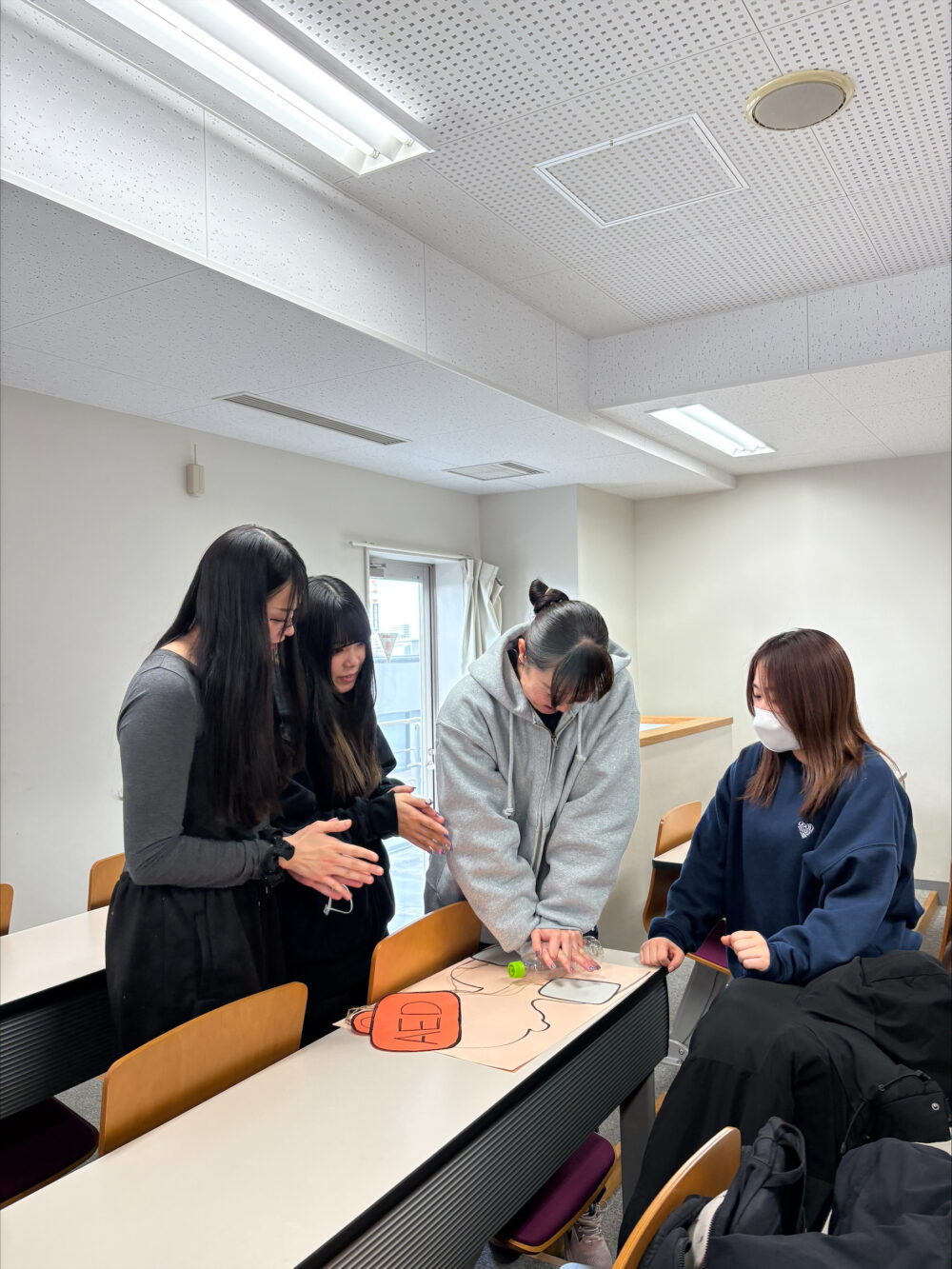 胸骨圧迫実習中