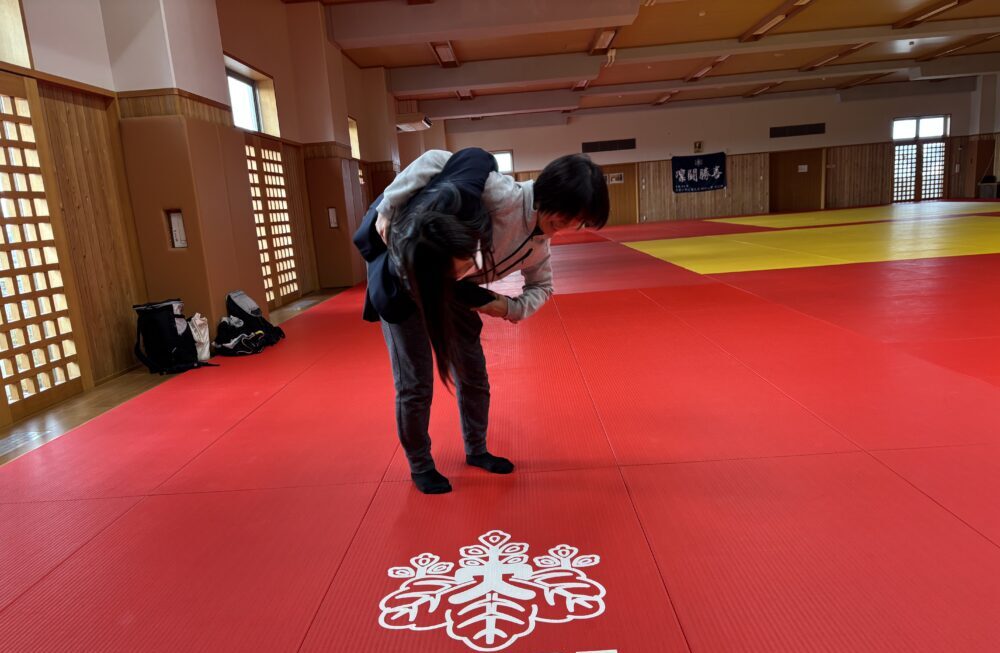 体育大学ならではのカリキュラムに沿った様々な授業の様子を、講義、実技共に見学しました。実技では学生が声をかけあって、真剣に取り組む姿を見て、自分も体を動かしたくなったと話していました。また、柔道場では佐藤愛子先生が柔道体験をさせて下さり、本格的な施設での体験に大興奮の様子でした。そして、講義では体育のみではない幅広い分野の授業があることに驚いた様子で、とても集中して教員の先生の話に耳を傾けていました。