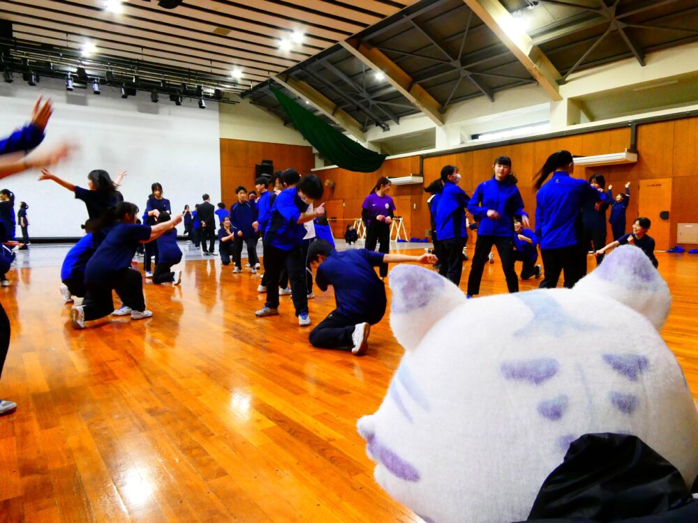グループごと振付に取り組む中学生をとよぴーも応援!