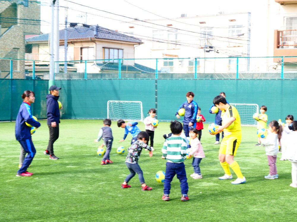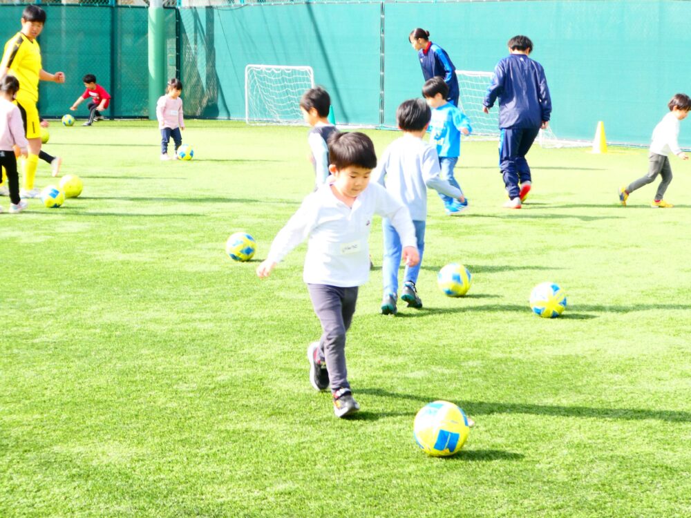 ボールを使って遊びながら、様々な動きを体験しましょう。最後はサッカーの試合にもチャレンジ!