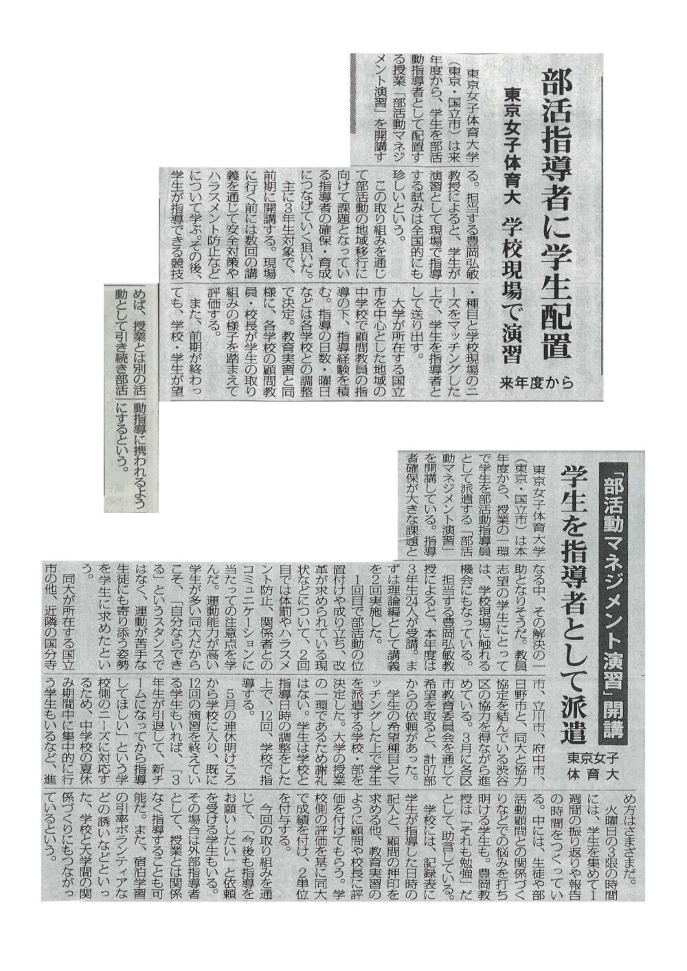 今年度から開講している「部活動マネジメント演習」に関する記事が教育学術新聞より紹介されました。